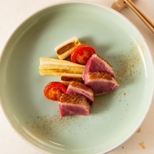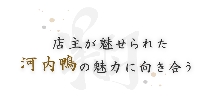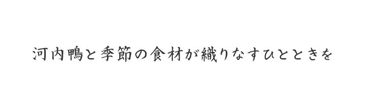 大阪の名門「ツムラ」の河内鴨は、力強い赤身と雑味のない脂が特長です。その魅力に惹かれた店主が、生産者から直接仕入れ、部位ごとに最もおいしく感じられる季節の調理方法でご提供しています。炭火焼きや椀物、季節の仕立てなど、多彩な調理で河内鴨本来の味わいを最大限に引き出します。