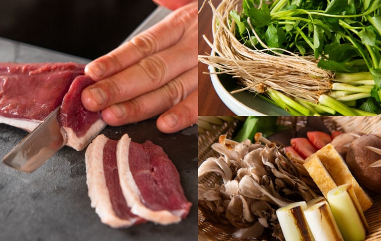 素材にこだわり、旬の野菜や魚介類を産地から直接仕入れています。特に、鴨料理と相性の良い秋田県産「三関せり」は、香り高くシャキッとした食感が鴨の旨味を引き立てます。その他にも、新鮮な食材を丁寧に仕込み、素材本来の美味しさを引き出しています。