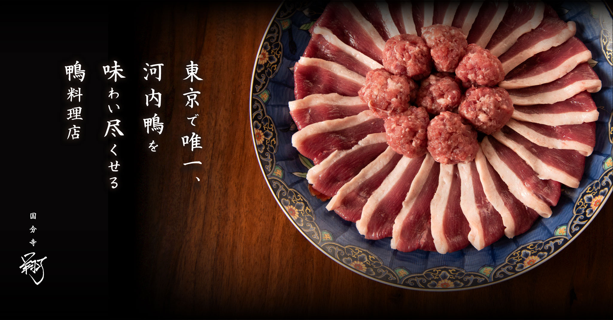 国分寺駅から徒歩2分。「国分寺 翔」は、東京で唯一、国内最高級合鴨・ツムラ本店“河内鴨”の様々な部位を味わえる鴨料理専門店です。店内には、落ち着いた雰囲気のカウンター席と、プライベート感を大切にした個室をご用意。接待やご家族でのお食事にもふさわしい空間で、完全予約制だからこそ上質なひとときを、心ゆくまでお楽しみいただけます。