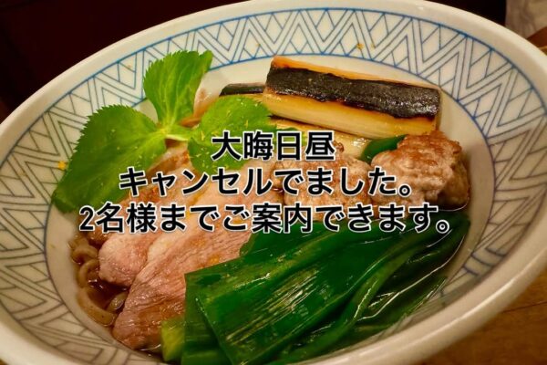 2025.12.25 大晦日。 昼の部2名キャンセルでましたのでご案内できます。 […] 大晦日。 昼の部2名キャンセルでましたのでご案内できます。 年越し河内鴨南蛮十割蕎麦2,800円。 ご予約はDM、お電話、食べログ、一休サイトより受け付けております。元の投稿を見る