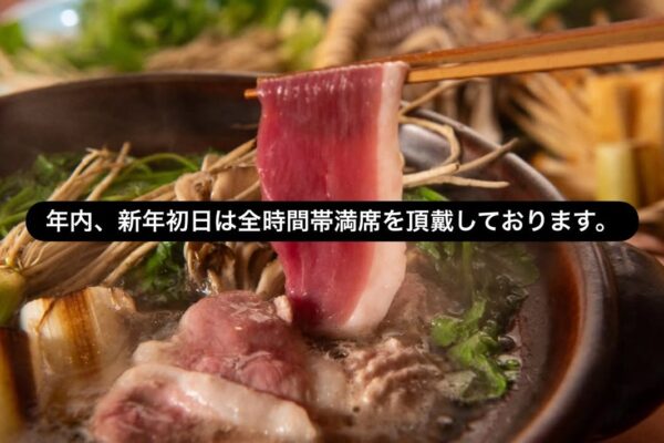 2025.12.28 年内、新年初日3日は満席を頂戴しております。 新年1/4日( […] 年内、新年初日3日は満席を頂戴しております。 新年1/4日(日)以降お席今の所ご案内できます。 4(日)の河内鴨と特選三関せりの鴨鍋コース11,000円では河内鴨京白味噌雑煮、正月らしい酒菜八寸をご用…