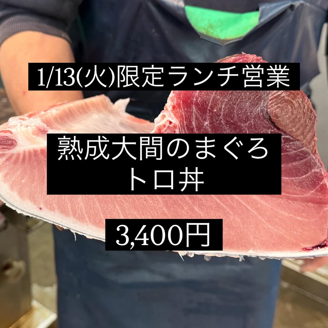 初荷で仕入れた大間の本まぐろ腹上1番の熟成トロ丼3,400円です。