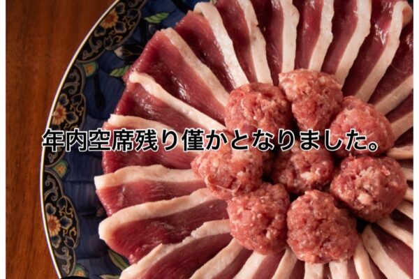 12/27(土)夜。 カウンター3席空きができ今のところご案内できます。 ・河内鴨の鴨鍋コース8,800 ・河内鴨と特選三関せりの鴨鍋コース11,000 ・河内鴨色々部位含む特選三関せりの鴨鍋コース1…